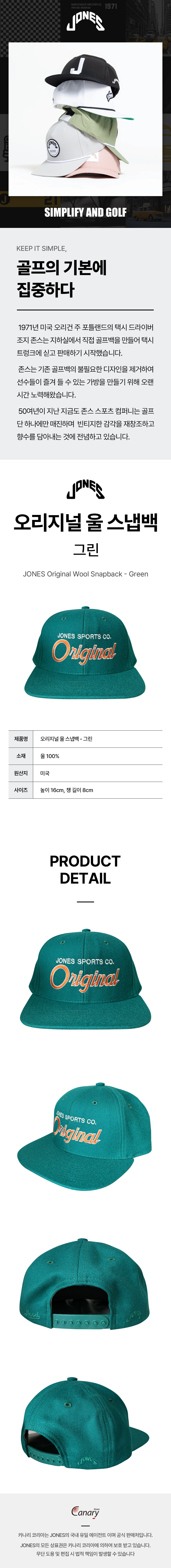 존스 오리지널 울 스냅백 그린